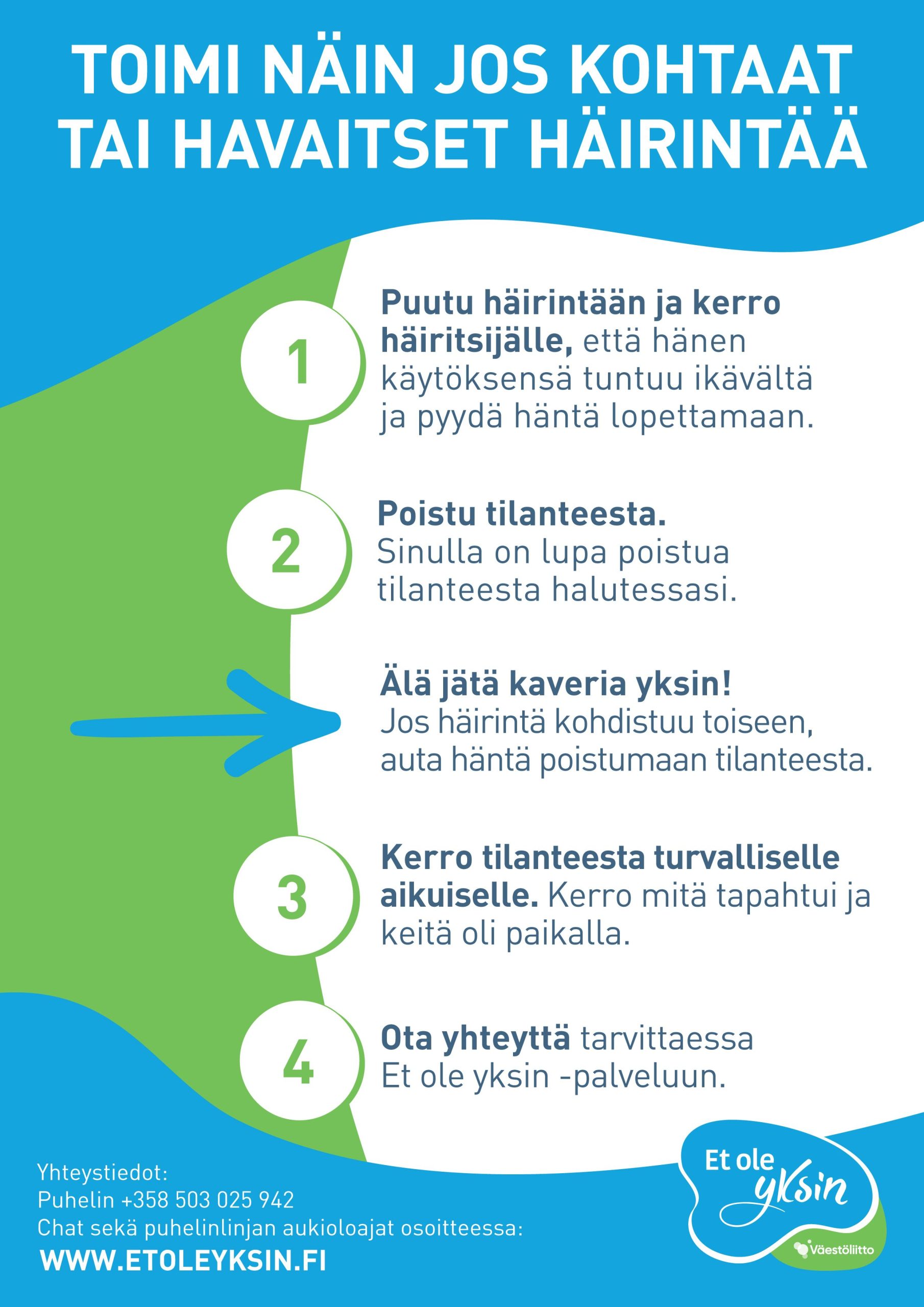 - Toimintaohjeet häirintätapauksissa -juliste A4